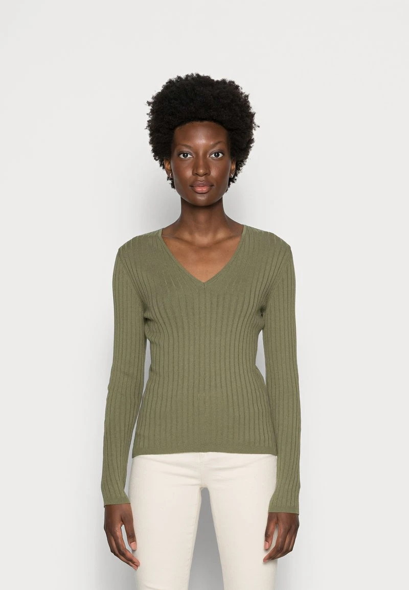 - Cuello/escote: En V pronunciado